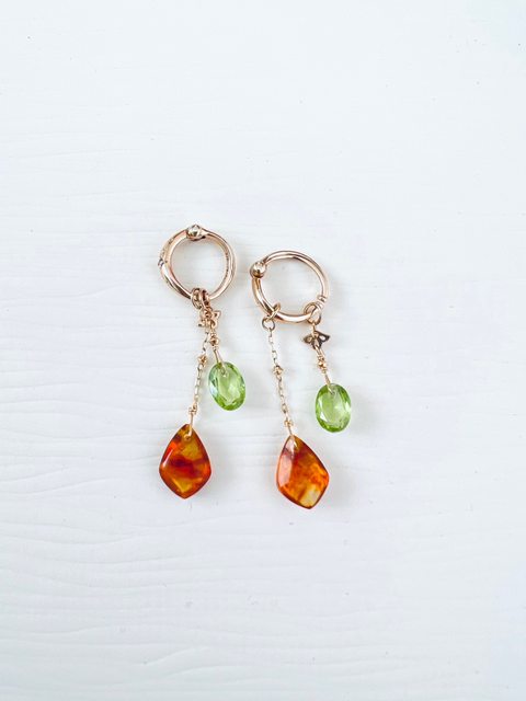 湖水綠藍寶 (teal sapphire) 項鍊,和橄欖石琥珀吊墜夾式耳環組。