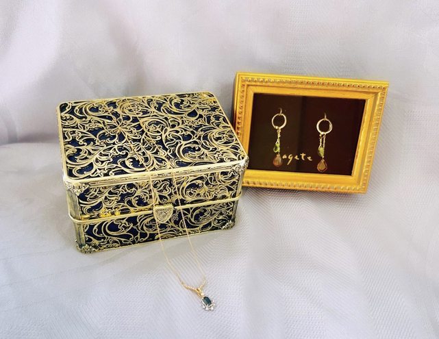 近看耳環盒,彷彿一幅畫作展品。