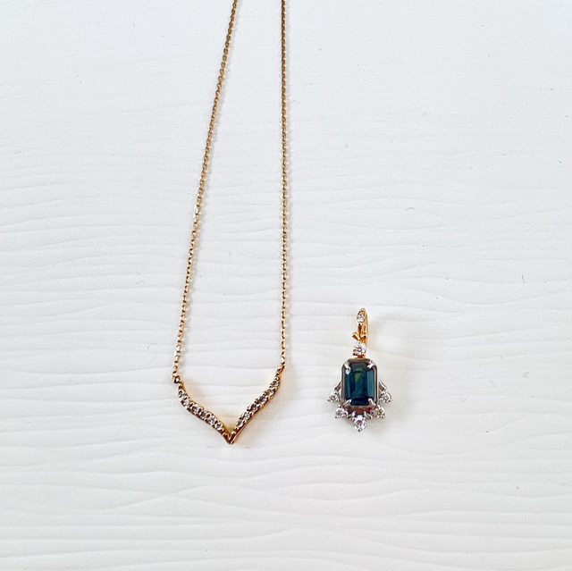 項鍊材質是18k金,吊墜則是18k金與900鉑金
