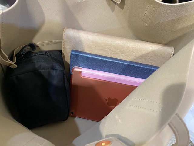 這個袋子也不小喔 目前放鏡子, AirPod, 口紅都塞得進去