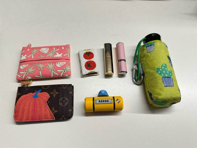 可以裝的下折傘、零錢包、衛生紙包、牙線包、行動電源、口紅、香水