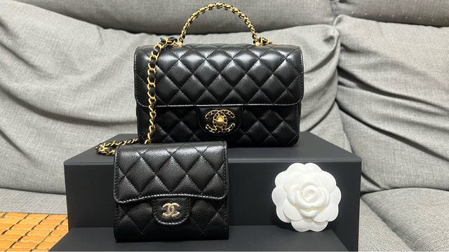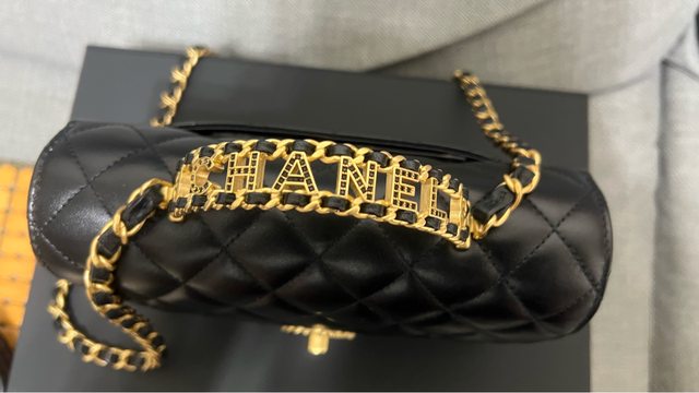 CF包身的設計,但扣子卻是19的元素,金屬很黃有種復古金的感覺,加上那精緻的提把鑲