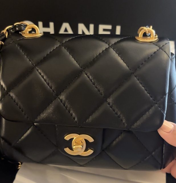 是黑色包款,只要是想試背的包,親切的SA就會拿下來給試背,其中就是被這款黑金小包