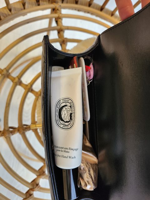 內容量,可以放下手機、卡夾、門禁卡、乾洗手、小零錢包、車鑰匙、一支護唇膏,跟一