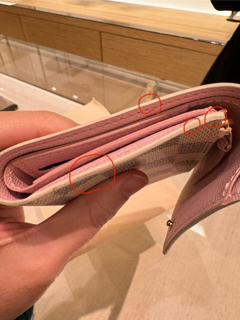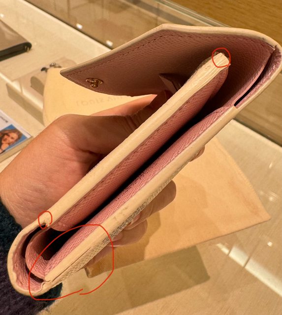 上網查也爬了很多文,知道要回門市維修會可能會遇到很多問題 ex. 不給修、維修要錢、 櫃員態度冷淡…等等 但看著裂痕越看越不順眼,決定拿去復興SOGO的LV門市詢問維修的事情 到門市告知門口接待的櫃姐說我要維修 就被帶到展示櫃前了解狀況 櫃姐拿起皮夾看了一圈直接說 「這個裂痕在轉折處,是使用的問題,送回香港維修整圈油邊要4750元」 「這個一定是人為因素嗎?會不會是產品瑕疵呢?」 (因為我真的沒有很常用,平時也都 放在防潮箱裡) 報了電話櫃姐查了購買紀錄 「你這個是2018年買的,已經很久了,可能只能自費維修,當然維修師傅評估後也有可能不 收費」 「那就送修吧」 (反正我是為了維修來的) 等待櫃姐key 資料,等了一陣子 櫃姐拿了一瓶Evian 礦泉水給我請我再等一下 (不是填資料送修就好嗎? 突然覺得緊張起來) (A few moments later) 「小姐,不好意思,因為2017年曾經有一批皮件有出問題,會有異味出現,我剛剛上報給我 們主管,我們決定讓你現場換一個等價位的皮夾或是補差價換別的商品」 內心大驚,沒想到劇情轉折這麼大XD 但因為現場沒有同款棋盤格victorine,櫃姐又特別強調現場換,別的門市不一定可以換貨b la bla 我就換了一樣是粉色內裏的老花Victorine https://i.imgur.com/iNwyx9Q.jpg