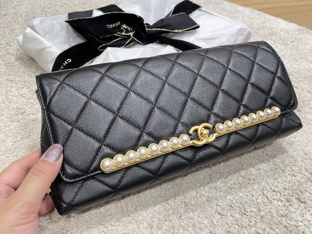 長型的晚宴包 搭配16顆珍珠飾