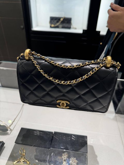 後來找到另一家香奈兒,用了要幫老婆找聖誕驚喜禮物的理由,許願想要金球包,不過店裡沒有,只好拿出類似款式來參考看看