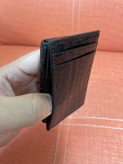 正面小零錢格,中間兩格放折疊紙鈔,背面兩卡格