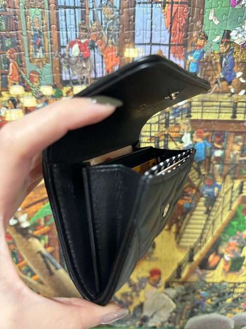 接著拿出了黑白雙C相間的一字零錢包(牛皮