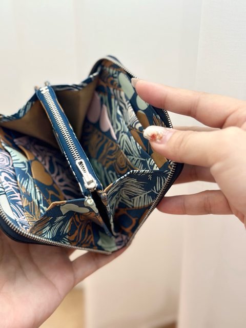 夾變得很雞肋。現在改用絲巾短夾,巴掌大小的尺寸放在前口袋也不違和。而且因為有拉