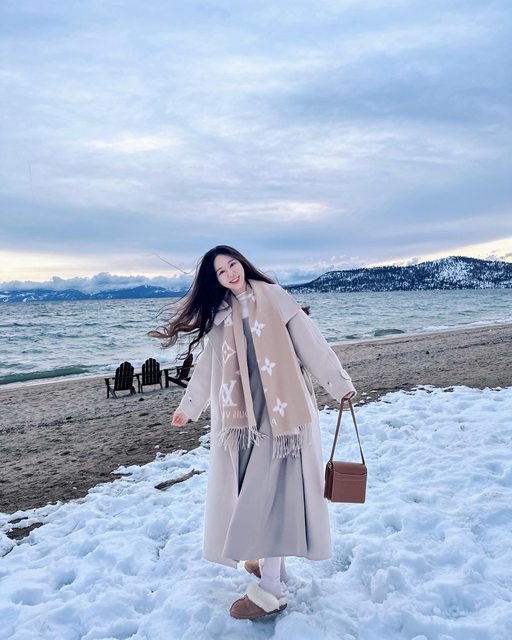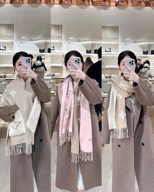 左邊是新款的羊絨圍巾,有兩個毛絨絨的口袋