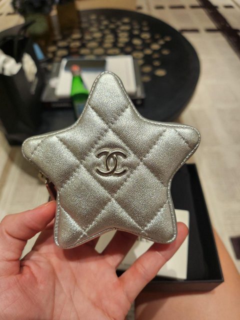 拆開緞帶之後,是我之前一直很想很想買的銀色星星小零錢包!!!!