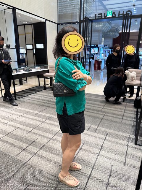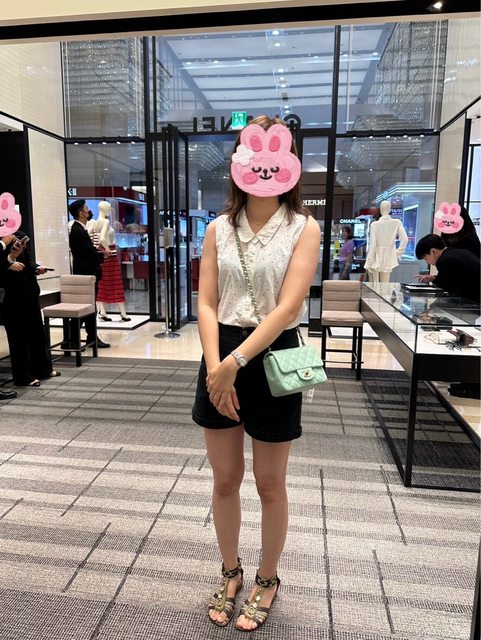 決定粉色包後,詢問SA有沒有表妹想要的黑色經典卡包,SA說經典的沒有但有季節款黑色