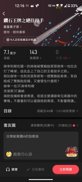推 goddarn : 之前看過一本鑽石王牌的書 運動的緊張感不好寫 主 05/07 14:09
