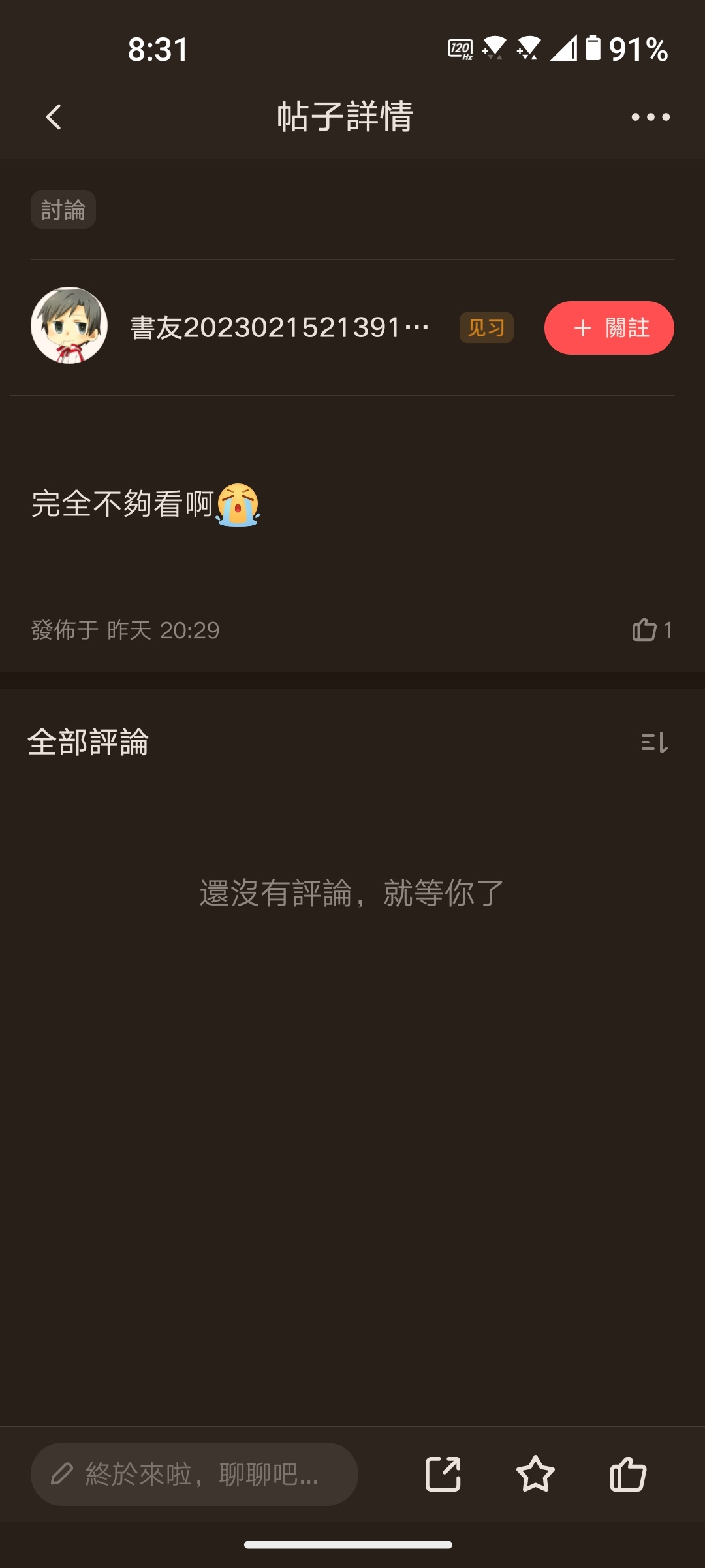 推 hutten : 還沒開喔!?煩請開了發文提醒 謝 05/25 11:15