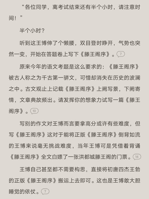王博自己甚至都不需要構思,直接將初唐四傑王勃的正版《滕王閣序》搬運上去即可。這