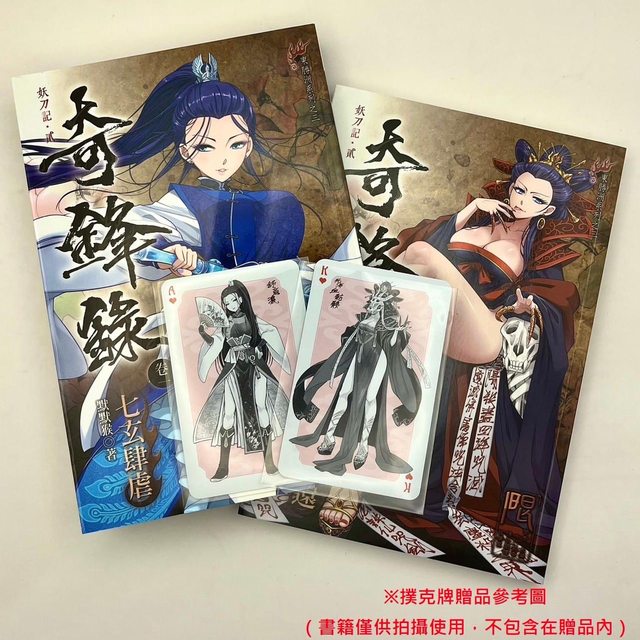 凡於默默猴粉絲團購買《奇鋒錄》卷三的書友,都能得到《奇鋒錄》角色撲克牌:舒意濃/死海血骷髏各乙張!男裝少城主vs長腿邪教妖女、純情大小姐vs血汗鬼上司的對戰組合,是否有抓住你的心呢?
