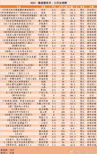 標題[閒聊] 赤戟的書荒救濟所:優書網七月數據