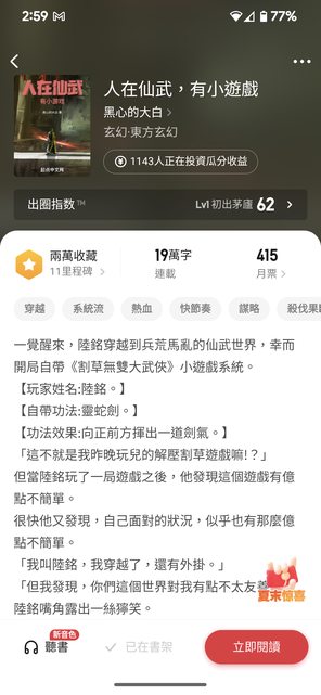 目前進度:很巧,第一卷剛好結束了(19萬字),看完很滿足,故事完整,後面的東西也