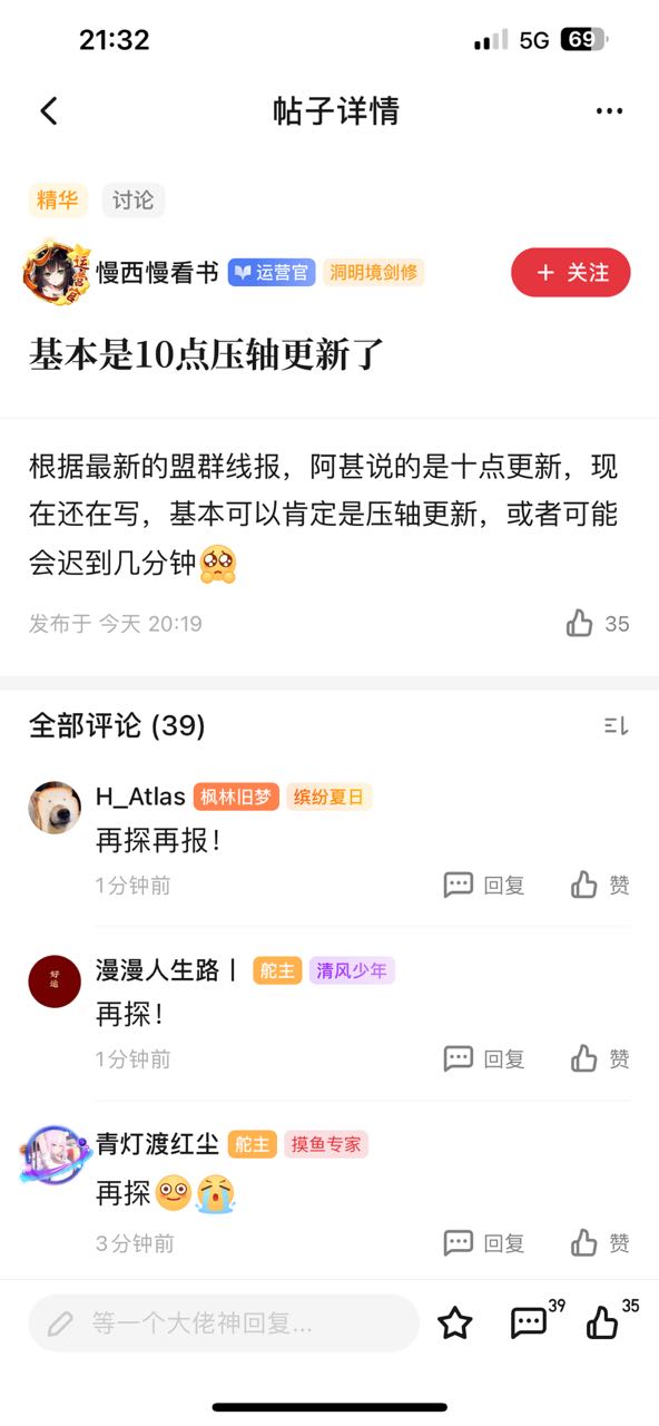 → lenhu : 大師兄有在山海境內修行。就鳳唯真還有混沌的支線了 10/20 15:26