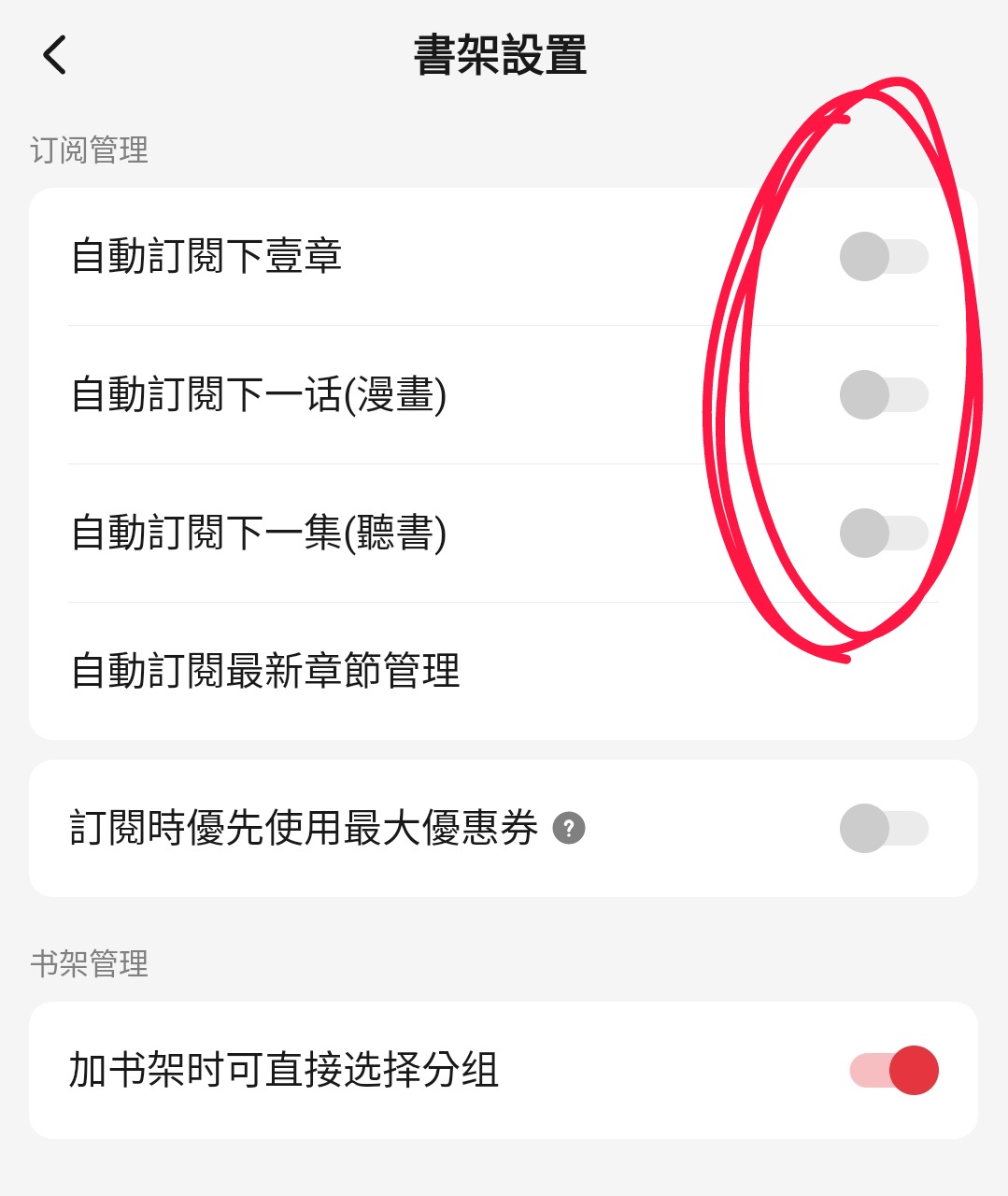 → topcdmouse : 點進去之後書架設置,關掉訂閱管理的選項 07/02 17:43