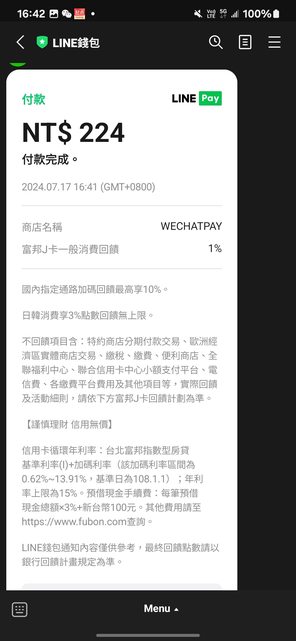 → stepnight : 我是綁富邦J卡消費,不是用LinePay07/17 17:54