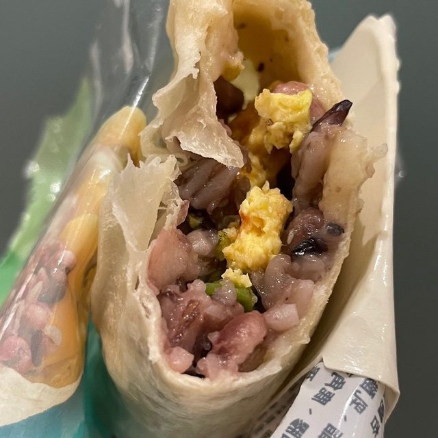 餅皮蠻像是墨西哥捲那種, 加熱後偏軟但吃起來的口感還不錯