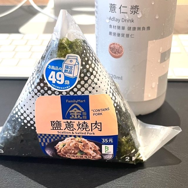 標題[商品] 全家鹽蔥燒肉飯糰/薏仁漿