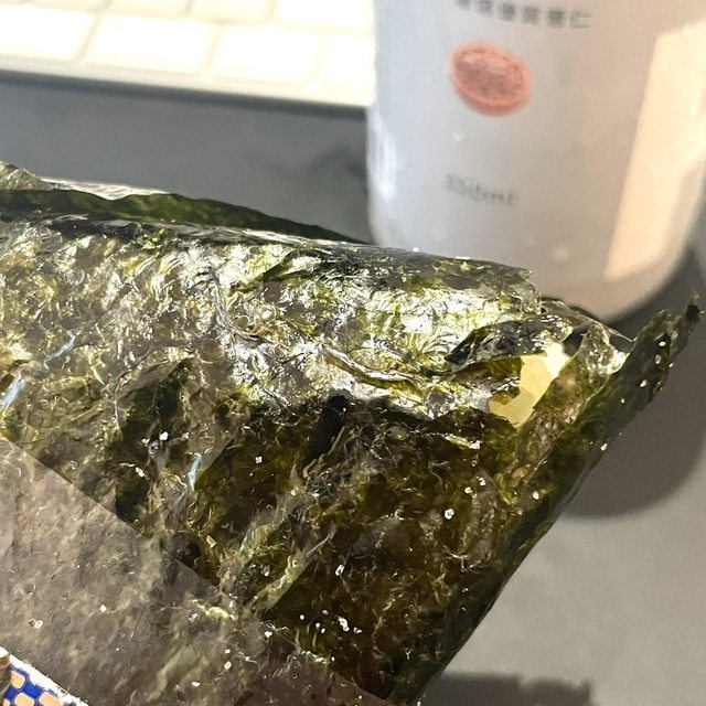 海苔吃起來有點麻油香,細看上面還有一點鹽巴