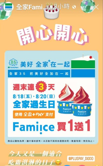 標題: [情報] 全盈+PAY 全家霜淇淋 買一送一8/18~8/20