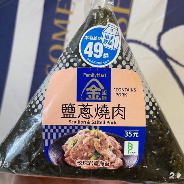 雞肉飯飯糰$35 鹽蔥燒肉飯糰$35 (第二個58折)