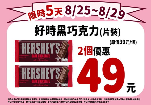 → sos7770013: 好時黑巧 全家之前買一送一 711竟然+10元 08/23 18:47