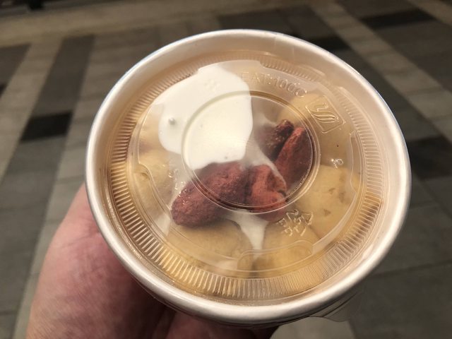 店員在擠冰淇淋之前有先拿出開過的義美小泡芙出來,當下心裡就登愣一聲,不過想著還沒