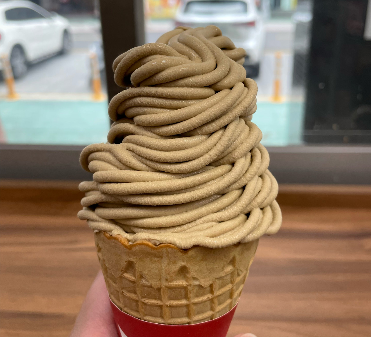 【心得】:霜淇淋入口先是荔枝味,再來是烏龍茶味,但不苦,個人覺得口感還算綿密,