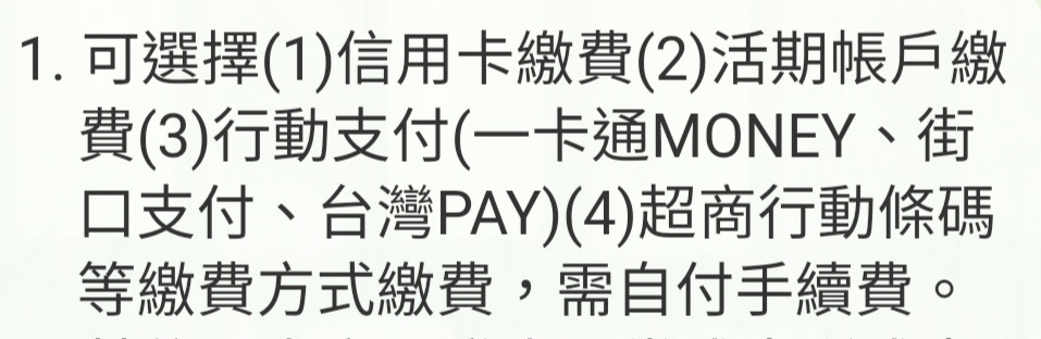 推 gn0111: 你用怎樣繳費連同手續費會一起算吧 這能分開附嗎 09/08 15:56