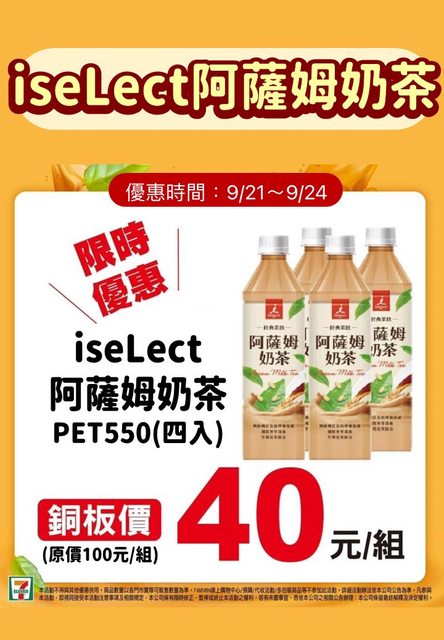 7-11 iseLect阿薩姆奶茶 550ml 4入 40元