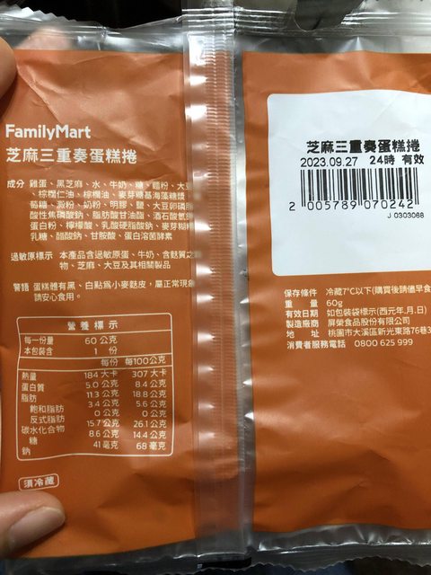 標題[商品] 全家 芝麻三重奏蛋糕捲