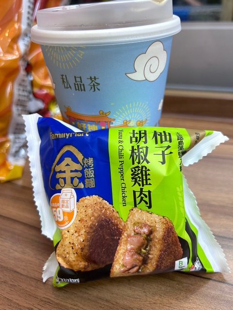 【商品名稱/價格】:柚子胡椒雞肉烤飯糰搭仙女紅茶59