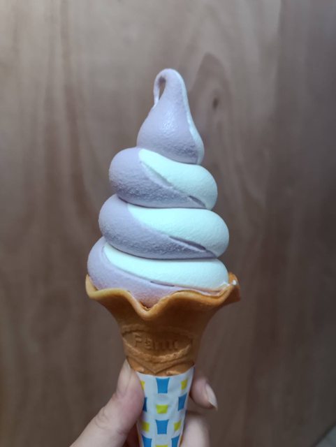 因為店內是霜淇淋銷售很好的店,很容易就會在換檔前用完料,會避免遇到活動日才洗機台 換口味,通常銷售完就會接到新檔,所以10/5的口味,現在就在店內出現 綜合吃第一口都是滿滿牛奶味,尾味才出現紫薯味 吃起來像月餅是地瓜餡,然後淡淡甜味 所以吃綜合第一口會覺得很甜,都是牛奶味道,最後才有紫薯味 跟上一檔荔枝烏龍一樣,尾味出現烏龍 我覺得很好吃,除了對巧克力甜味比較敏感,基本對其他口味甜度容忍高,所以我覺得蠻甜 的 吃多會膩,但是因為我算是吃霜淇淋的大戶(?),所以一次吃兩隻也還好 單吃紫薯味道也是淡淡甜,怕甜的可以吃單口味 因為店長說會被罵所以更改圖QQ https://i.imgur.com/ZX1vBTD.jpg