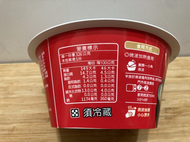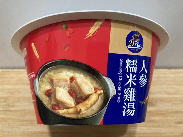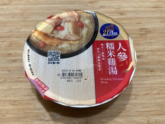 人蔘糯米雞湯:326公克(固形物70公克)/雞肉、糯米、人參、枸杞、水/149大卡