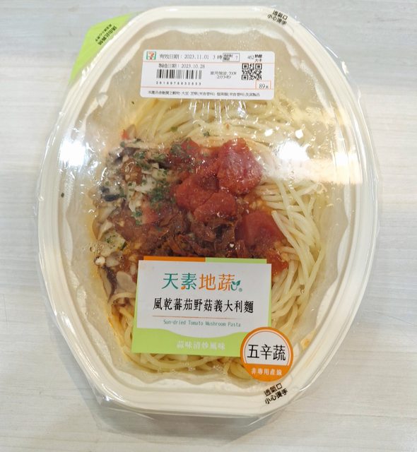 【商品名稱/價格】:天素地蔬-風乾蕃茄野菇義大利麵(五辛素)/89元