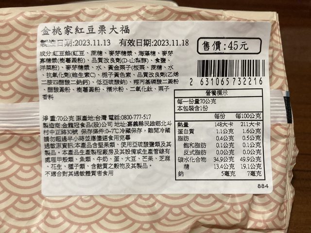金桃家紅豆栗大福:統一超/金龍冠食品
