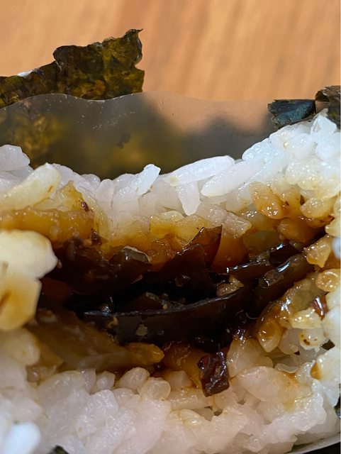 單吃有點太鹹,如同日式漬物煮的鹹度,換個日文外包裝我就假裝當成在日本買的飯糰。