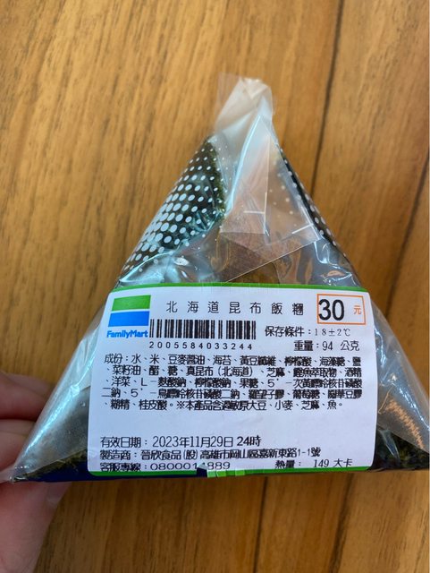 【商品名稱/價格】:北海道昆布飯糰/30元