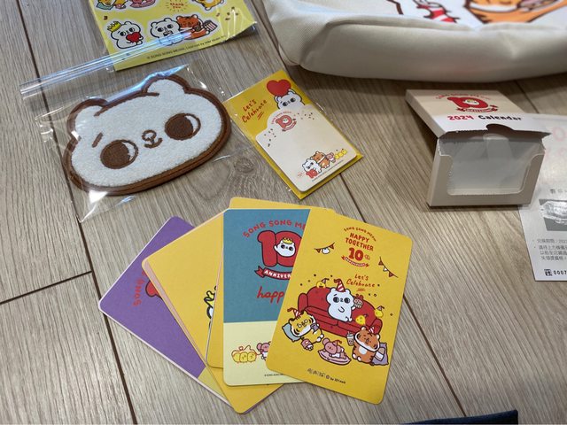 月曆小卡很可愛,杯墊是抽到我想要的爽爽貓