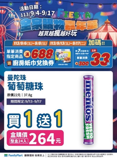 標題[情報] 全家 09/11~09/15 限時優惠+5康康