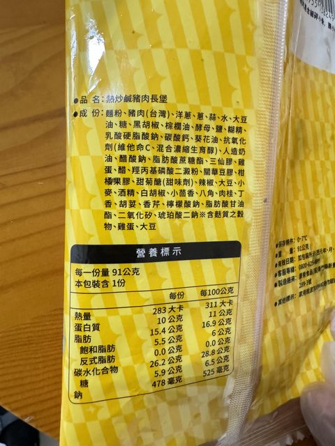 【規格/內容物/熱量】:長堡:283kcal,食鹽含量約1.2g/蘿蔔糕:228kcal,食鹽含量約1.72g