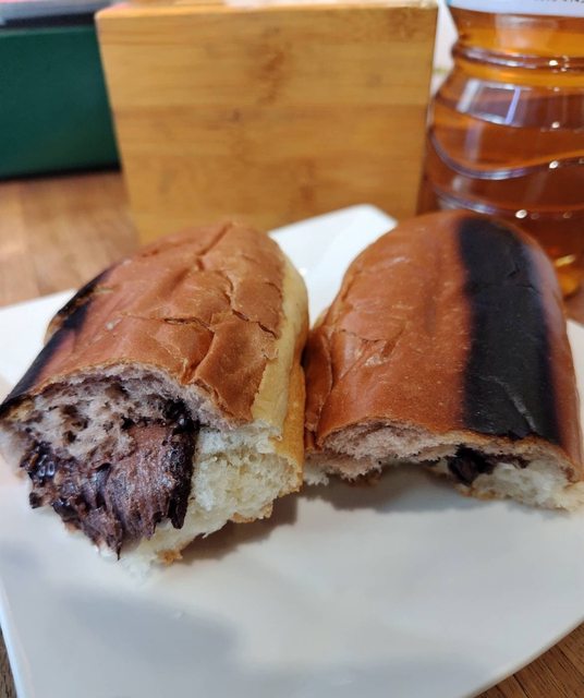 看橫切面感覺可可都爆漿了~沒找到芋泥(請忽略烤焦的外皮)