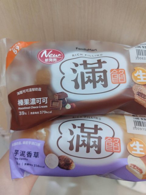 標題全家 生榛果濃可可滿餡&生芋泥香草滿餡麵包