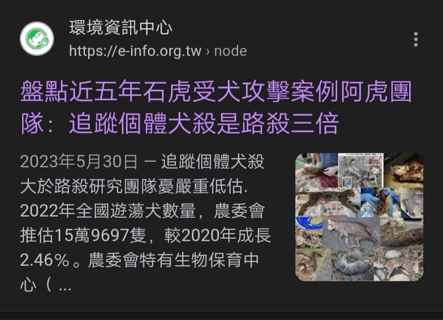→ joey0vrf: 食物變多>>組群增加 浪浪越餵越多而讓這些攻擊更氾濫 03/18 17:38